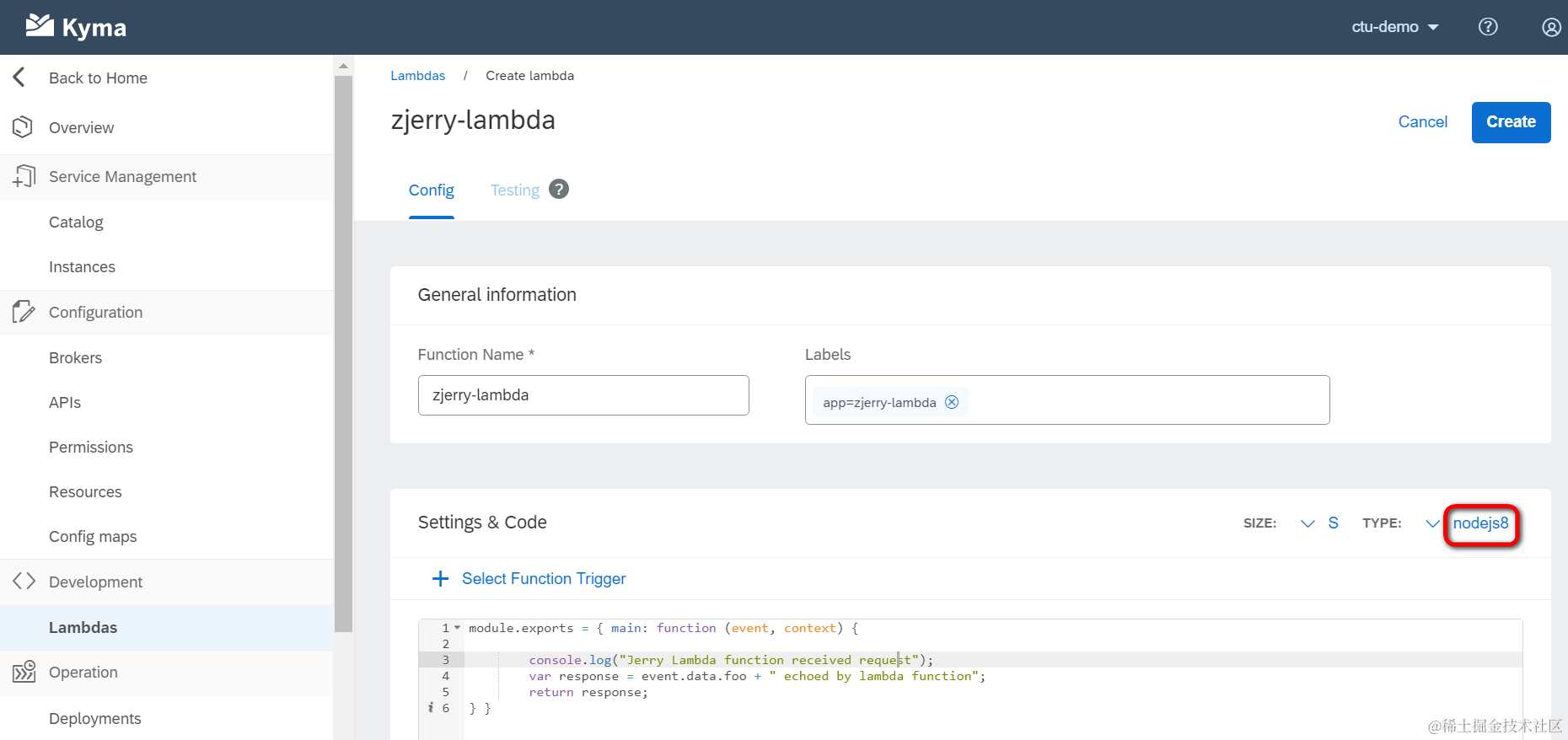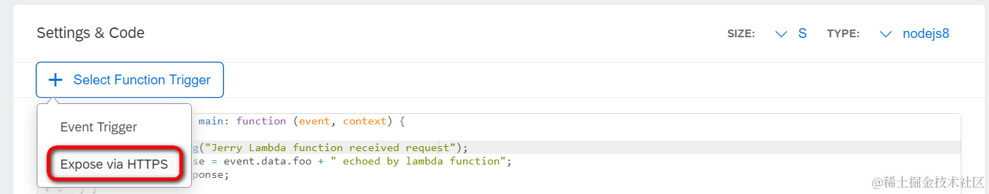 在Jerry之前的文章WordPress,SAP Kyma和微信三者的集成里创建的Lambda Function选择的触发方式是基于事件触发,这里我们试试HTTPS触发。