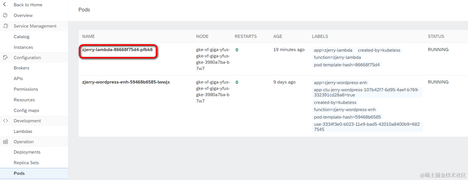 当我们创建了一个Lambda Function,背后发生了什么?虽然名称为Serverless,但是这些函数物理上总得运行于服务器上某种容器内,这种容器就是Kubernetes的pod,Jerry之前强调过,SAP Kubernetes基于Kubernetes,因此Kubernetes支持的命令,SAP Kyma也完全支持。