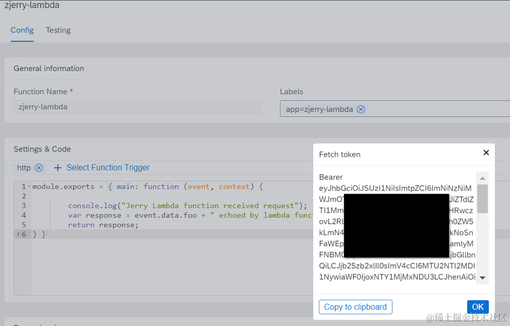 前面提到SAP Kyma的Lambda Function采取dex进行认证,如果想在编程语言里显式调用,需要提供相应的token.