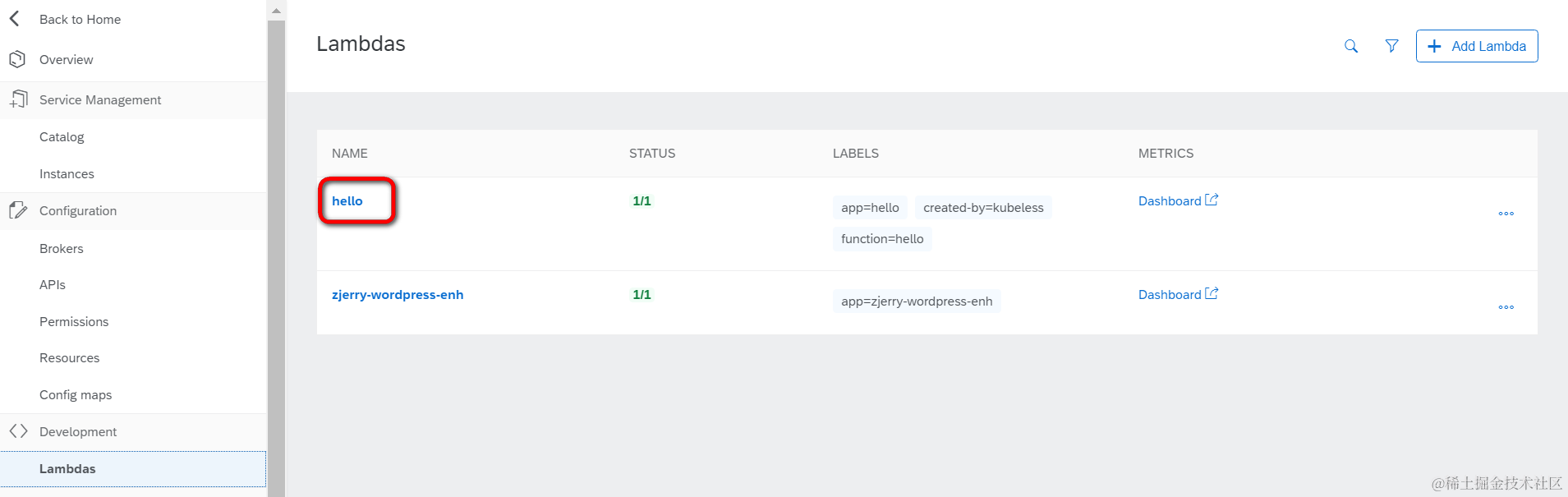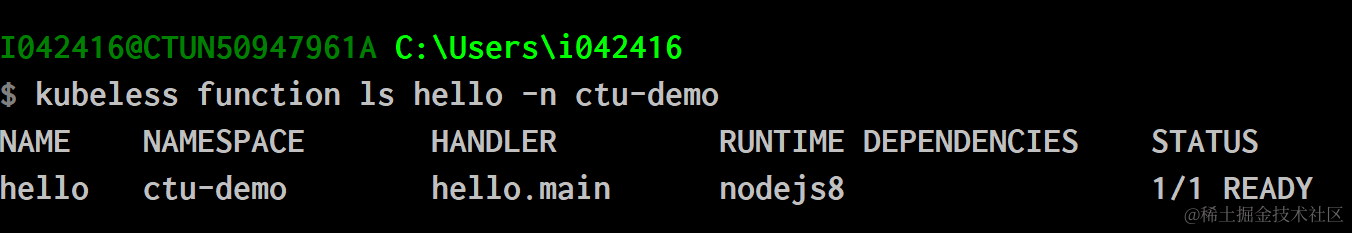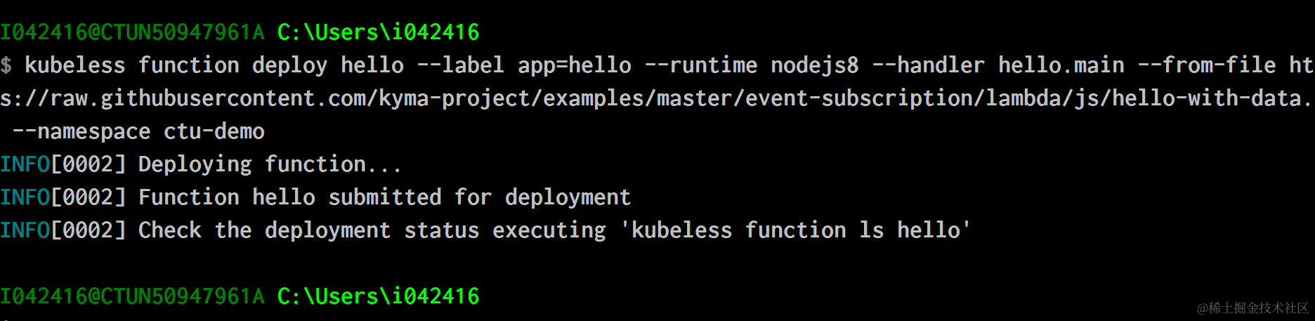 除了在Kyma的浏览器控制台里部署Lambda Function外,也可以使用Kubeless命令行: