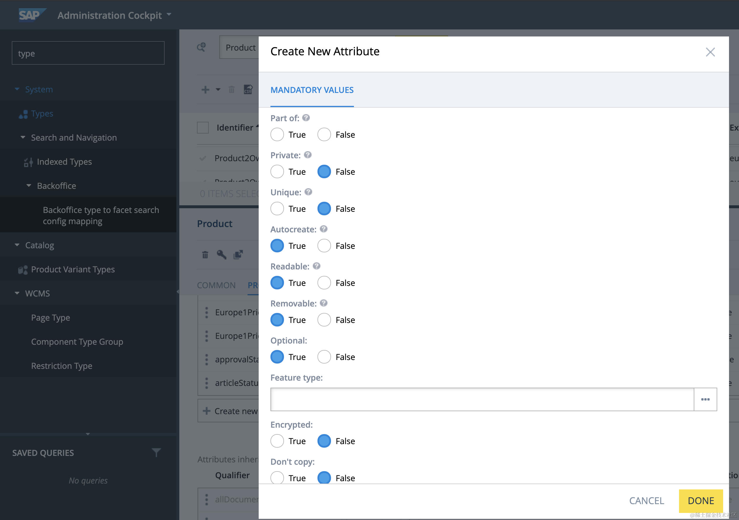 如何在Hybris Commerce的backoffice里创建扩展字段 已注销 2021-04-25 134 阅读1分钟 登录Hybris backoffice UI,Systems->Types: 选择在Product上增添新的属性: 要获取更多Jerry的原创文章,请关注公众号"汪子熙":