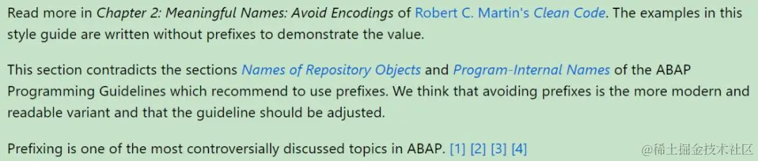 作者也深知这个建议和SAP官网help.sap.com上定义的ABAP编程规范里变量命名规范有相矛盾的地方,但还是坚持认为变量名不要前缀,是更加符合现代编程规范的做法,并且让变量有更好的可读性。