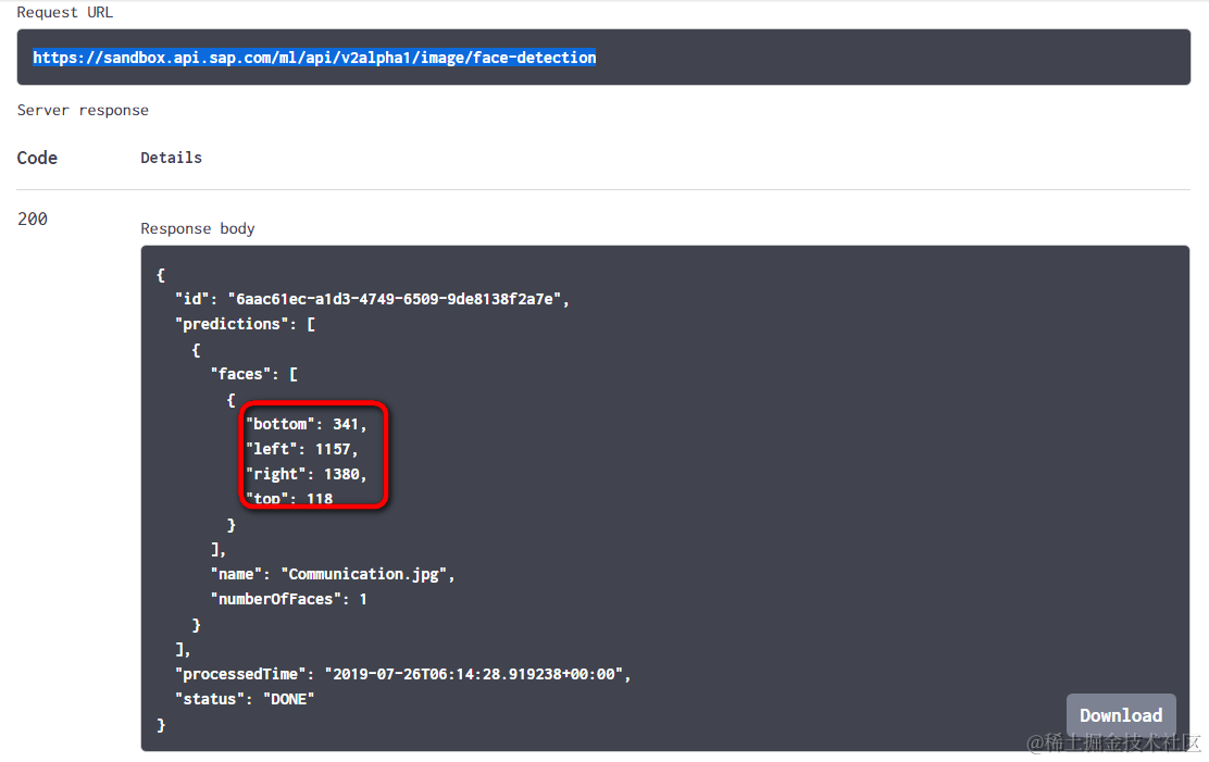 这个API识别出来的C罗脸的轮廓,通过一个矩形框标注出来,矩形框四个顶点在图里的位置如下图所示: