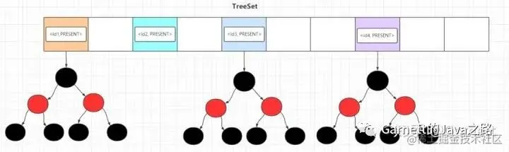 TreeSet 的所有操作都会转换为对 TreeMap 的操作,TreeMap 采用红黑树实现,任意操作的平均时间复杂度为 O(logN) TreeSet 是一个线程不安全的集合 TreeSet 常应用于对不重复的元素定制排序,例如玩家战力排行榜