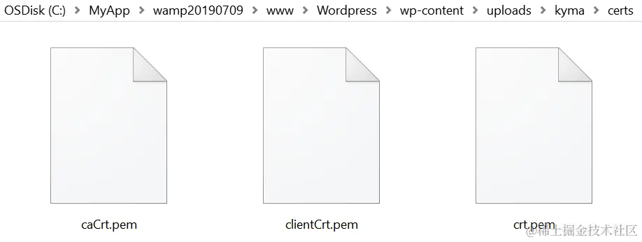 接下来和Kyma实例的交互,需要使用到这些存储在WordPress本地的数字证书文件: