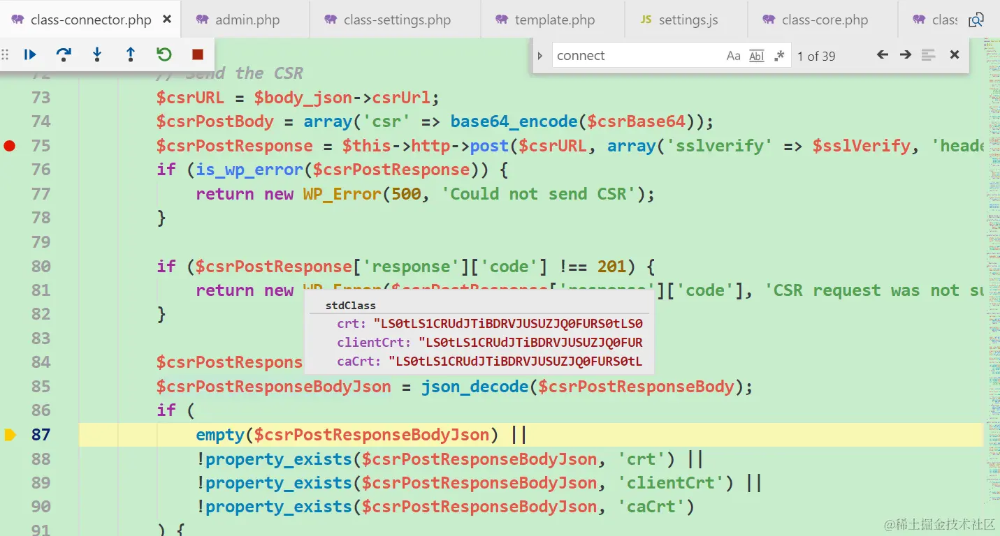 从结果响应里分别解析出crt,clientCrt和caCrt: