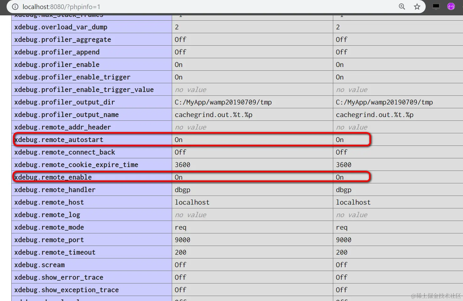 启动WAMP服务器,确保xdebug.remote_autostart, xdebug.remote_enable都为on: