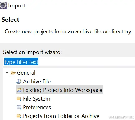 然后用Eclipse的Import->General->Existing Projects into Workspace: