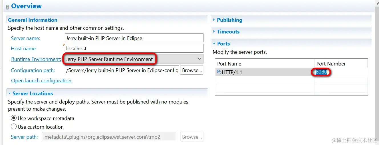 Eclipse里新建一个PHP built-in server,Runtime Environment选择成WAMP提供的PHP运行环境,端口改成和WAMP里Apache Web服务器监听的端口号一致: