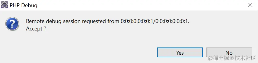 弹出PHP Debug的对话框,当然是选择Yes了: