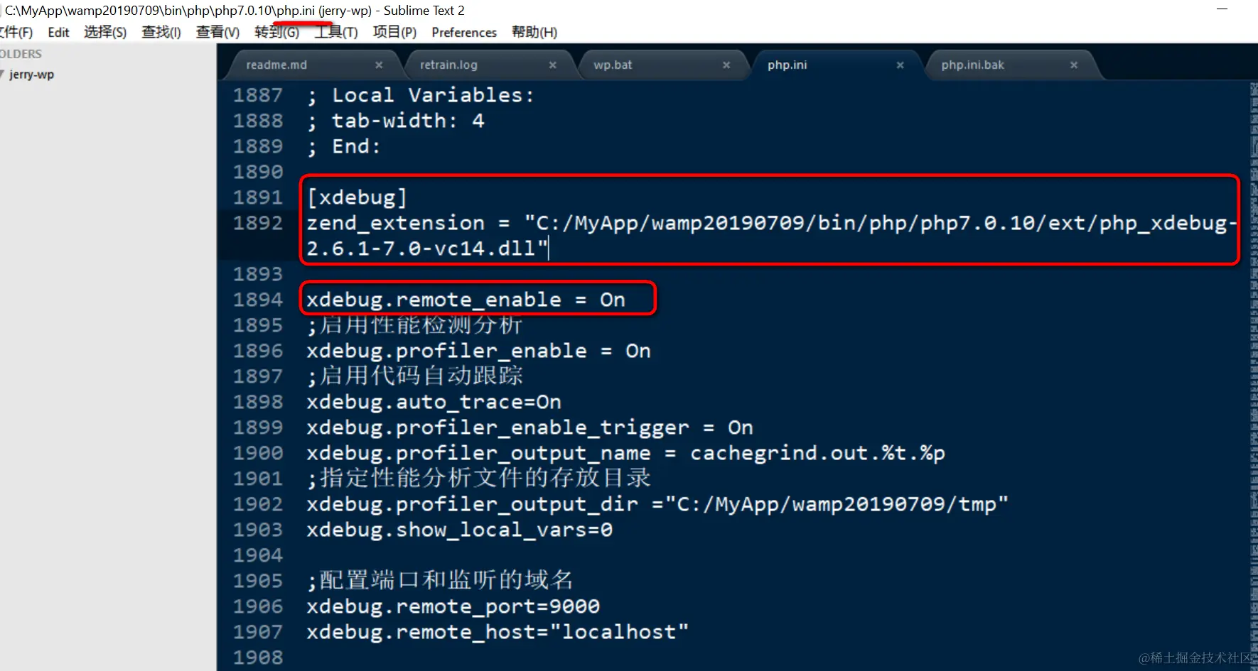 zend_extension = “C:/MyApp/wamp20190709/bin/php/php7.0.10/ext/php_xdebug-2.6.1-7.0-vc14.dll”