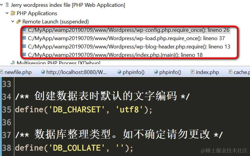 index.php作为入口,加载的调用栈如下图所示: