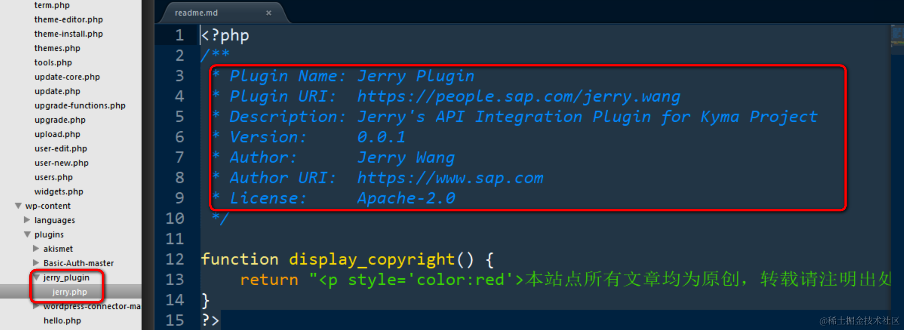 在Wordpress目录下面有一个文件夹叫做plugins,这里面的所有文件都成为Wordpress扫描plugin的candidates。