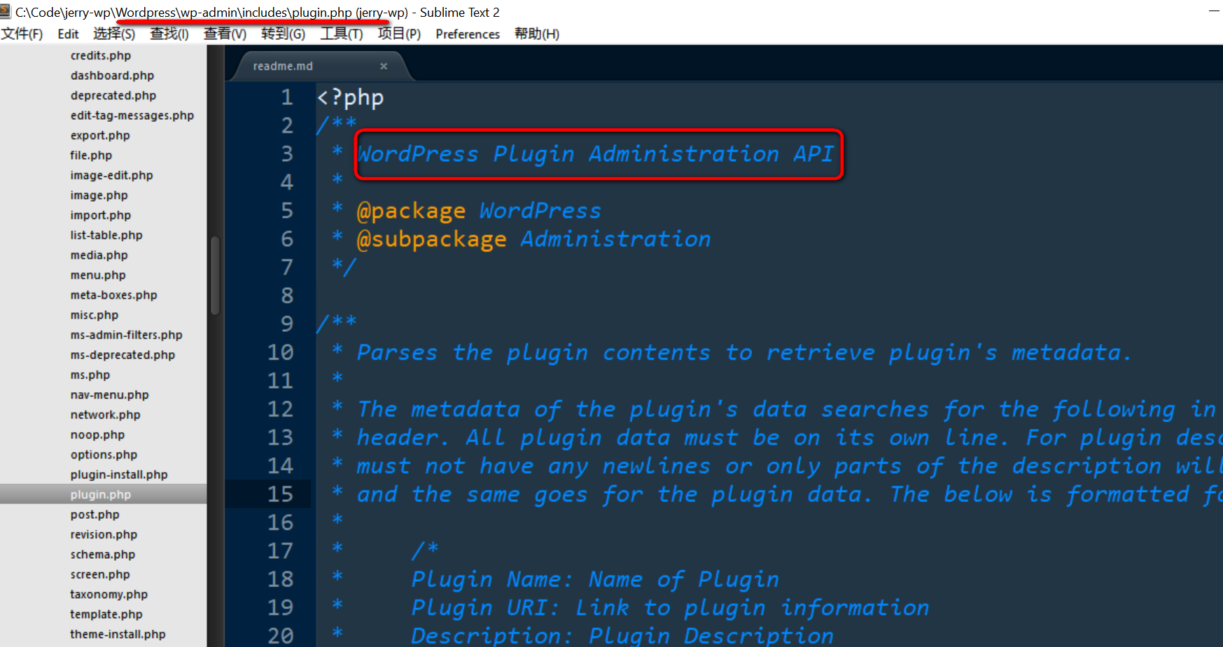 这个文件里面的函数get_plugin_data负责扫描plugins文件夹下面的.php文件头的注释,注释字段Name, PluginURI,Version这些定义在数组$default_headers里: