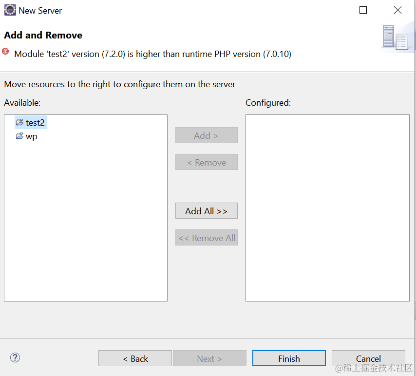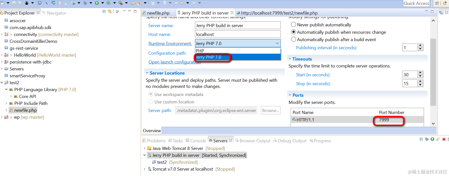 在Eclipse自带的built-in server里运行PHP文件 已注销 2021-04-25 280 阅读1分钟 错误消息:Module version 7.2.0 is higher than runtime PHP version 7.0.10: 解决方法: Eclipse里设置的PHP运行环境的版本是7.0.10: 而我PHP项目的Language库版本是7.2,当然会报错了。 右键选择test2项目,选择属性,将PHP version从下拉菜单里选择成7.0: 然后Eclipse built in server的版本也修改成7.0: 要获取更多Jerry的原创文章,请关注公众号"汪子熙":