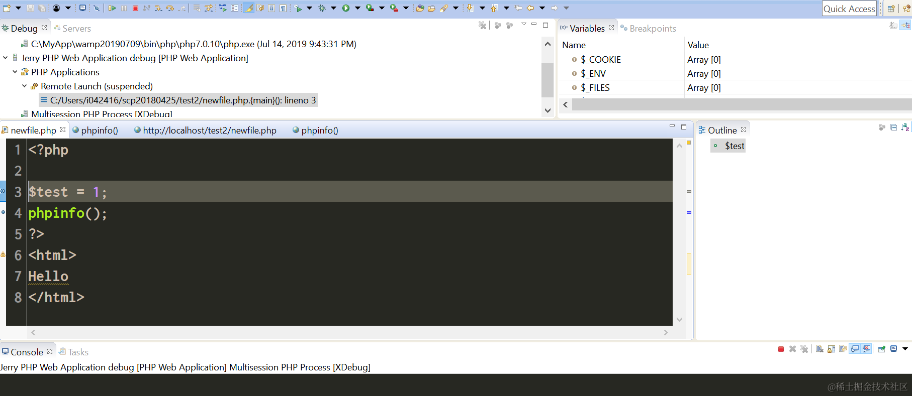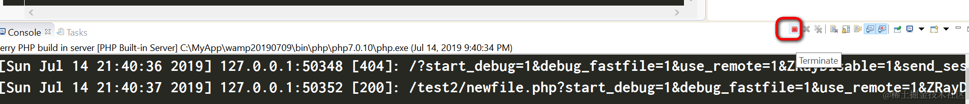 Eclipse Debugger Error - Web Launch Already running的处理方法 已注销 2021-04-25 223 阅读1分钟 我第一次使用Eclipse调试PHP web 应用,遇到如下错误消息:Eclipse Debugger Error - Web Launch Already running 解决方式 每次调试完成后,记得在Eclipse 里点击Terminate终止php.exe进程: 以及XDebug进程: 这样,就能避免Web launch already running的错误了: 要获取更多Jerry的原创文章,请关注公众号"汪子熙":