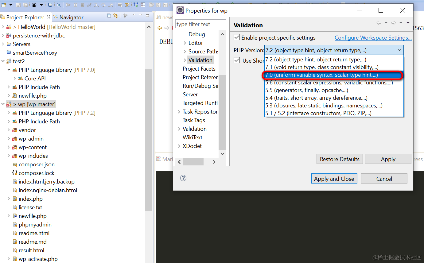 如何修改PHP项目Language Library版本号 已注销 2021-04-25 234 阅读1分钟 Module ‘wp’ version (7.2.0) is higher than runtime PHP version (7.0.10) 解决方案: 修改成功: 要获取更多Jerry的原创文章,请关注公众号"汪子熙":