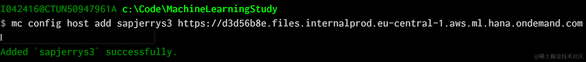 mc config host add sapjerrys3 d3d56b8e.files.internalprod.eu-central-1.aws.ml.hana.ondemand.com l8G xz