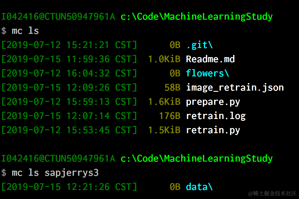 看到Added sapjerrys3 successfully的消息后,就可以使用mc ls浏览本地文件目录了: