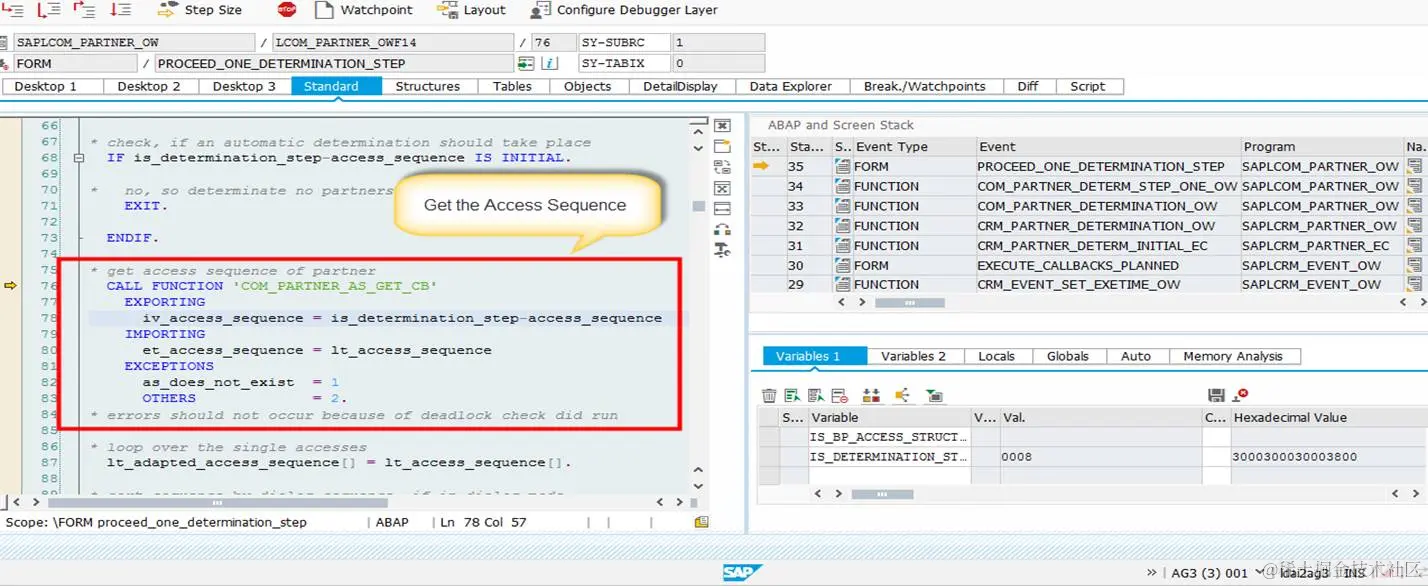 进入partner determine进行分析。在这里获取到transaction type定义的Partner Function, Access Sequence.