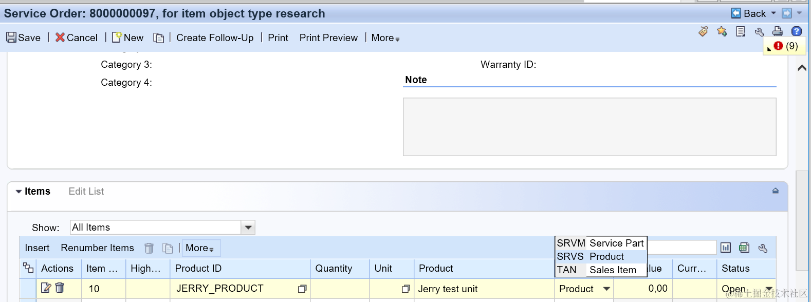 How is SAP CRM One Order item object type determined 已注销 2021-04-25 76 阅读1分钟 Created by Wang, Jerry on May 04, 2017 When you create a new line item for a given Service Order, You can find the corresponding entry in CRMD_ORDERADM_I has object type as BUS2000131 ( CRM Sales Item ). item category SRVS is bound to BUS2000131: 要获取更多Jerry的原创文章,请关注公众号"汪子熙":