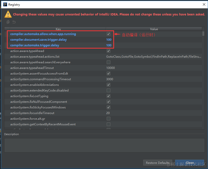具体步骤:同时按住 Ctrl + Shift + Alt + / 然后进入Registry ,勾选自动编译并调整延时参数。