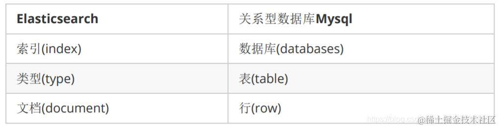 Elasticsearch对应Mysql的名词: