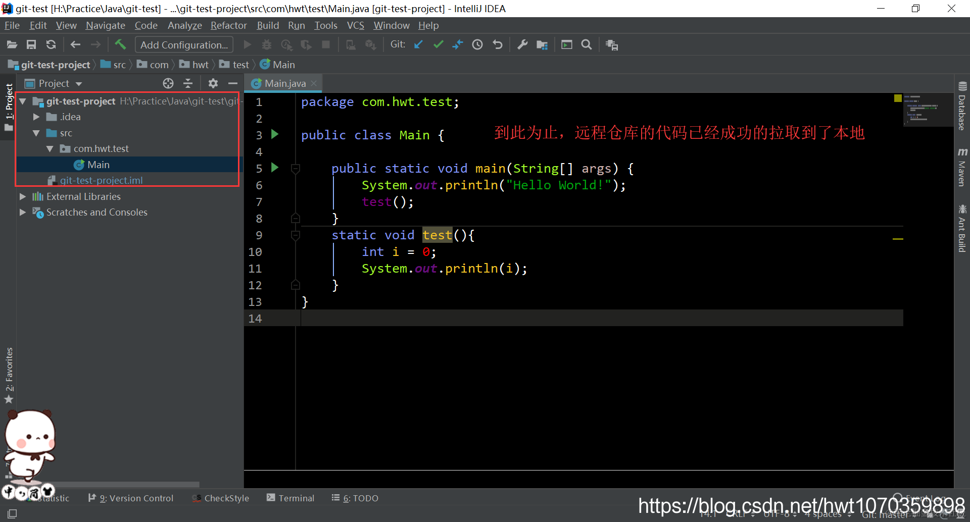 IDEA中使用Git 用户5000949932284 2021-04-25 171 阅读1分钟 用IDEA将代码提交到本地仓库: 用IDEA将代码推送到远程仓库: PS:到这一步,注意,如果是第一次向远程仓库推送内容,会弹出消息框让你填写github账号和密码,正常填写即可,如若是在自己电脑上,还可勾选记住密码,以后推送就不用输入账号密码了。 从远程仓库将代码拉取到本地: 从这里开始,后面全部是选默认设置,我也截了图,但大家可以不用对照着看,一路默认即可 修改拉取的代码,并推送到远程仓库: 其他人拉取我们刚才修改过的代码: IDEA中使用git分支