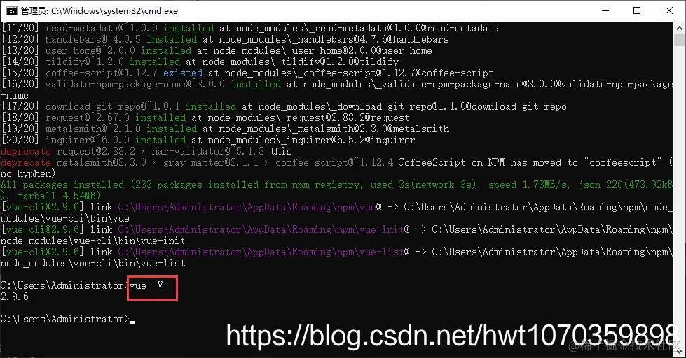 安装完成后,在cmd命令窗口,分别输入:【node -v】和【npm -v】,出现node版本则证明安装成功