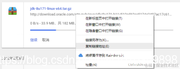也可以复制链接地址,在Linux系统中下载,不过复制链接地址不能直接下载,因为O\fracle做了限制,地址后缀需要加上它随机生成的随机码,才能下载到资源。