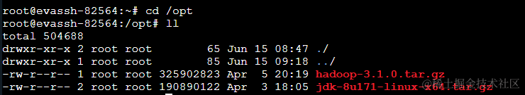 然后,切换到/opt目录下,来查看一下提供的压缩包。