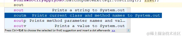 sout--->soutv=System.out.println("变量名 = " + 变量)