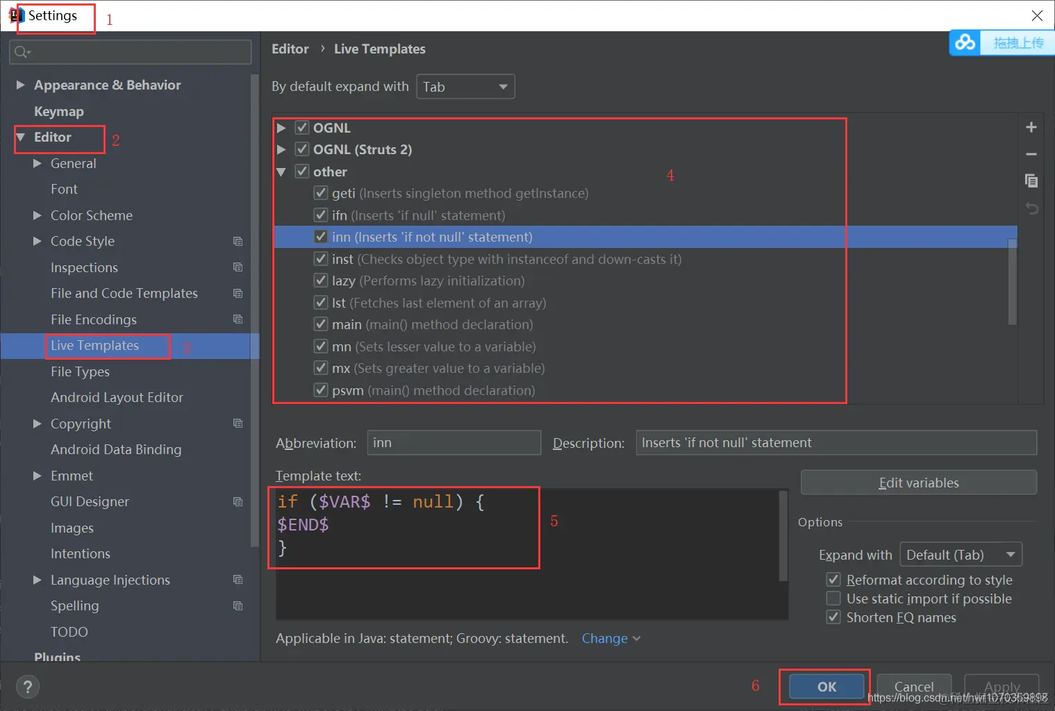 ②判断是否不为null:inn