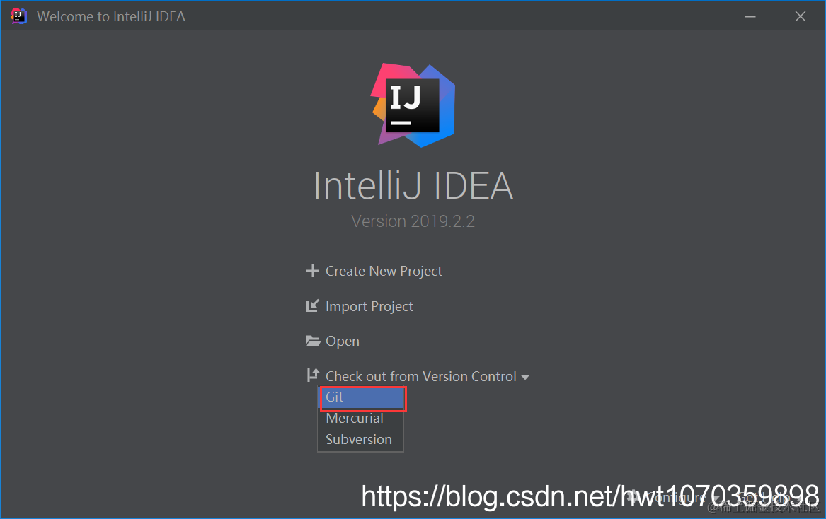 2、打开IDEA,在初始页面,选择Check out from Version Control,选择Git