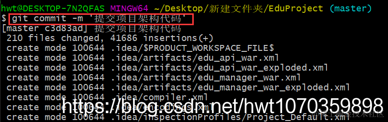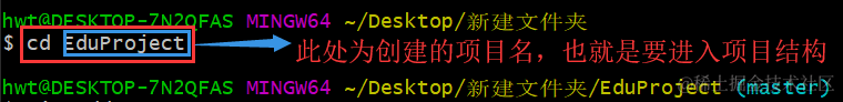 6、进入到项目路径:在git命令框中输入:cd EduProject