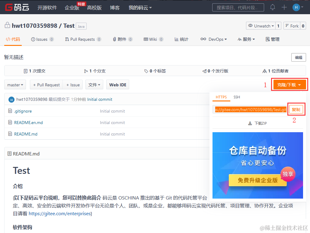 git clone https://gitee.com/hwt1070359898/Test.git