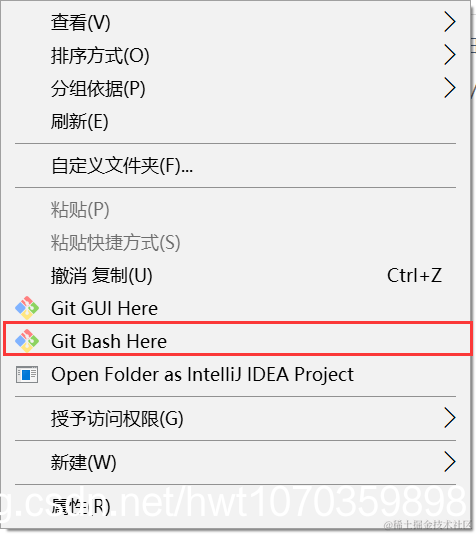 3、在文件夹中右击鼠标,选择Git Bash Here
