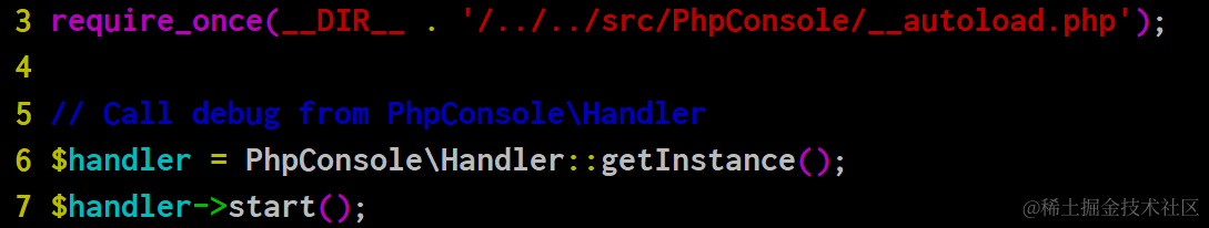 获得PhpConsole的handler句柄,调用start方法后即可使用: