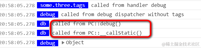 PC::db(‘called from PC::__callStatic()’); // means “db” will be handled as debug tag