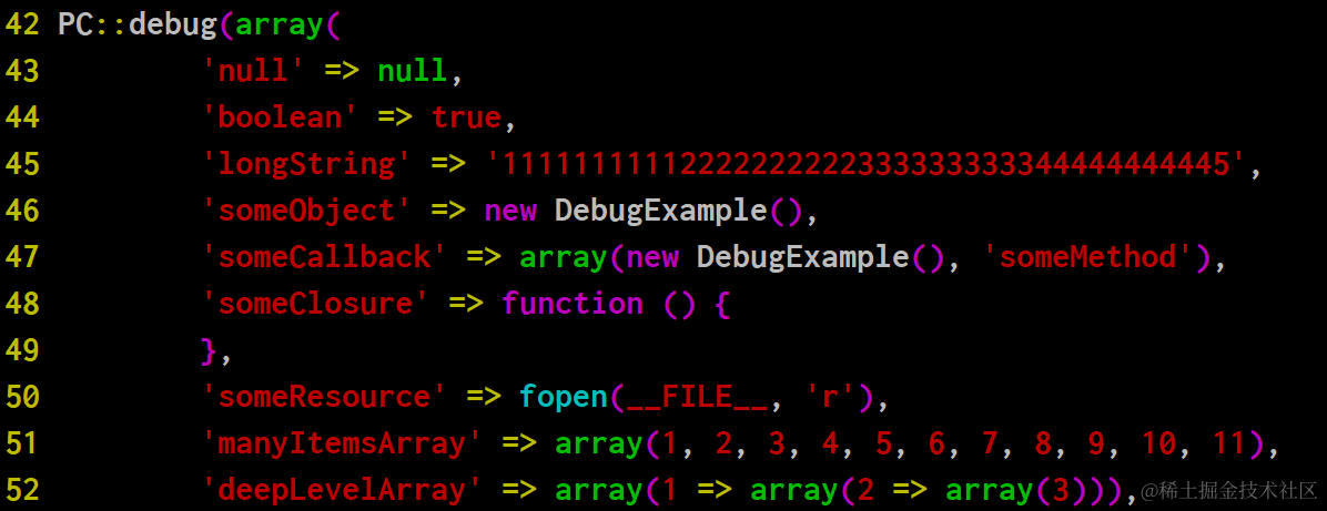 PC::debug(‘called from PC::debug()’, ‘db’);