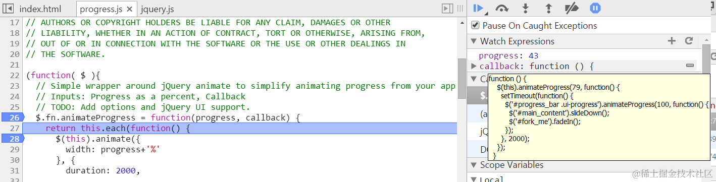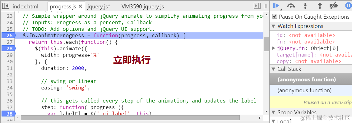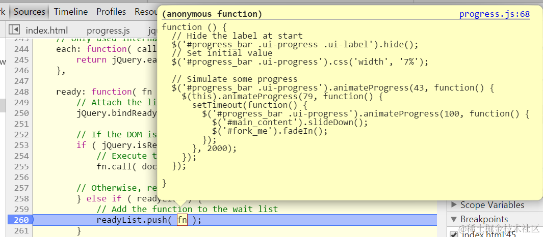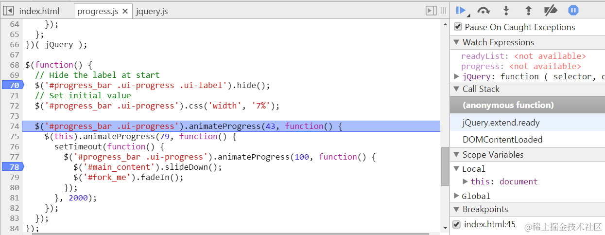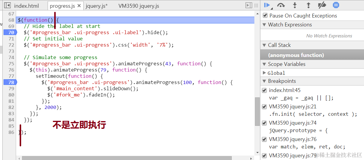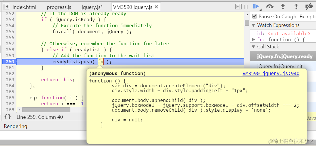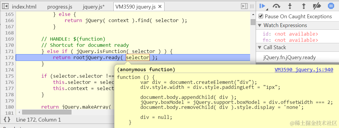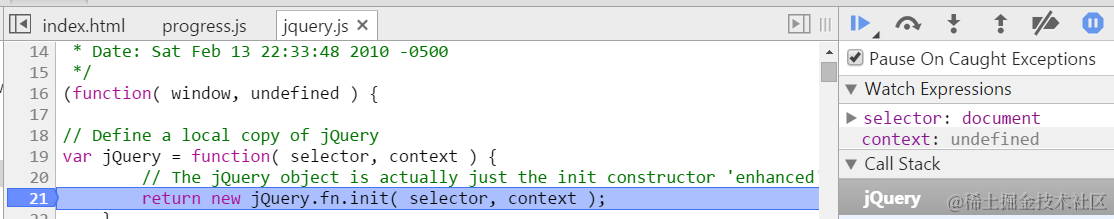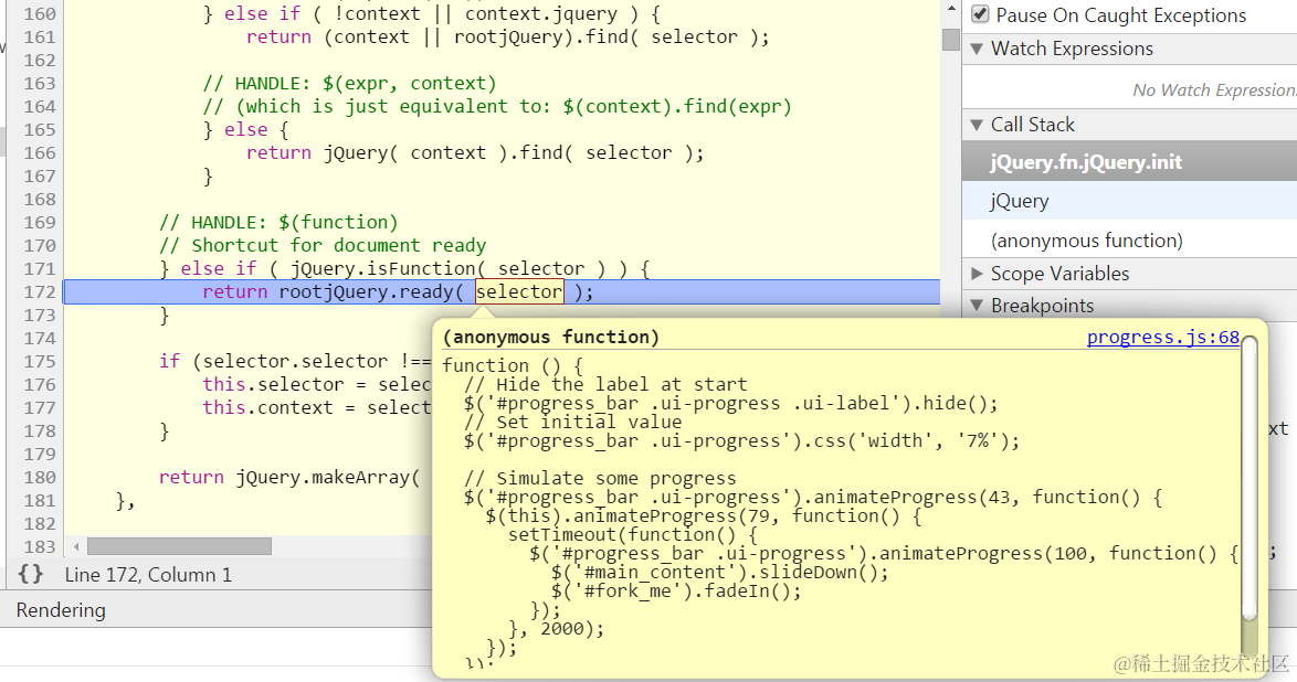jQuery init debug