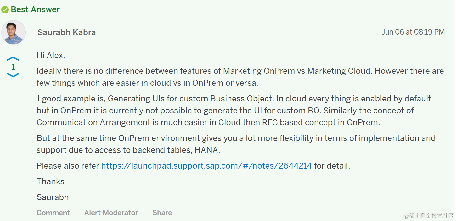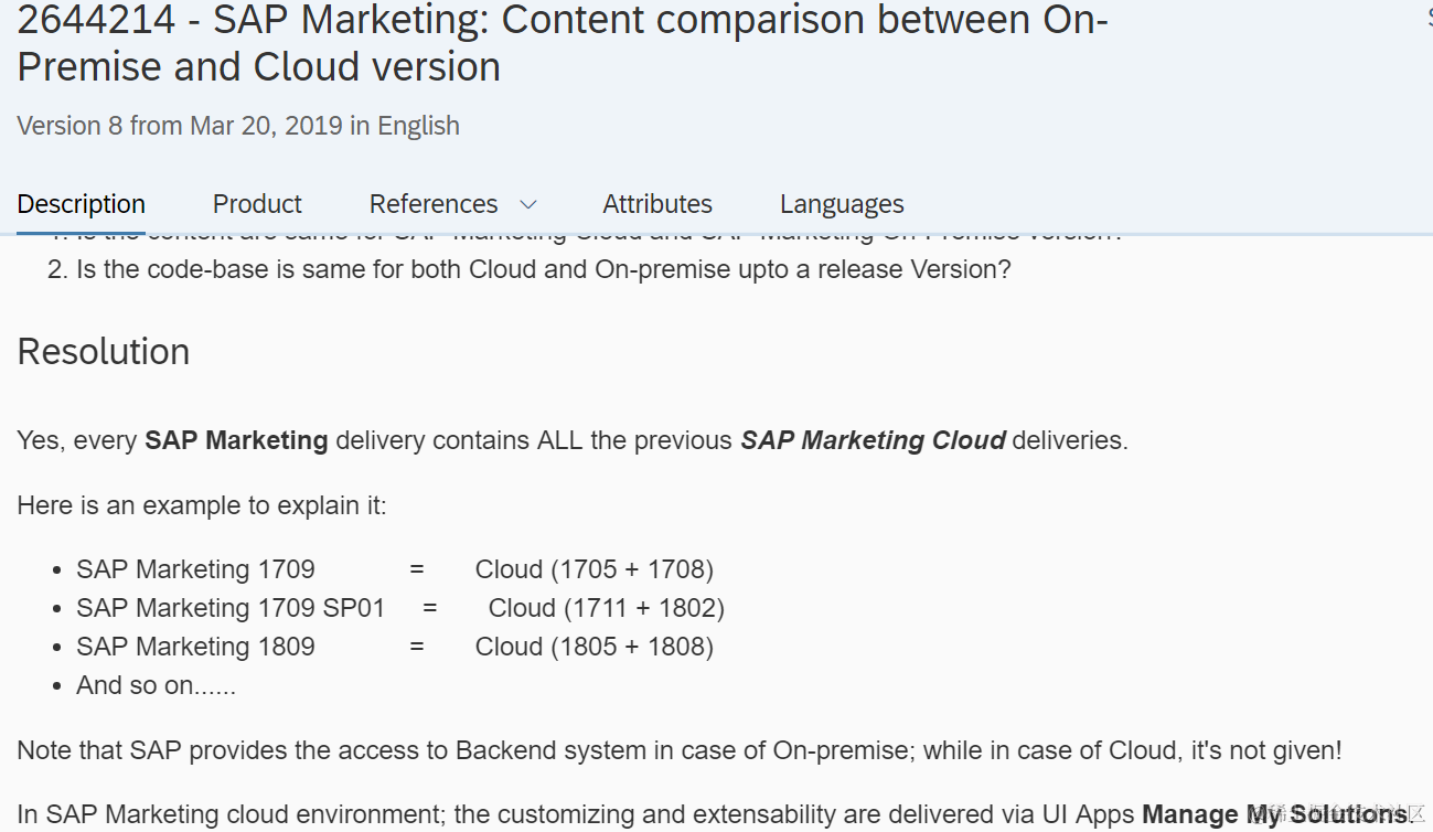 SAP Marketing是On-Premises解决方案,而SAP Marketing Cloud是SaaS解决方案。