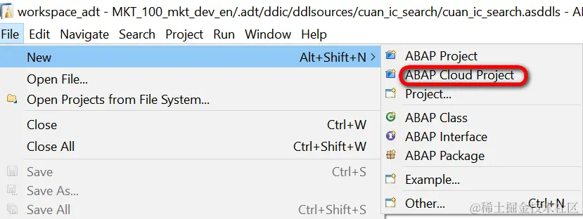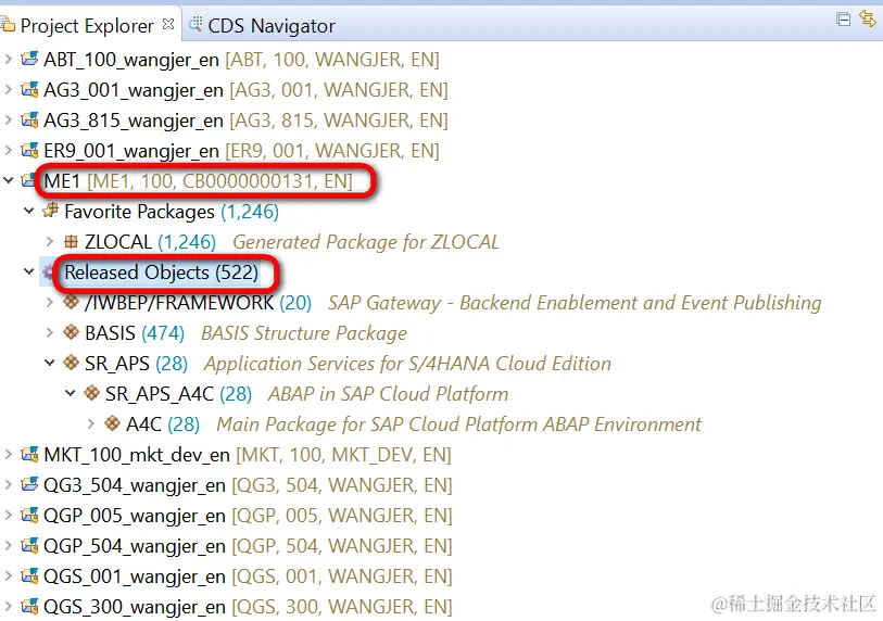 点击之后,在ABAP Development Tools左侧的项目列表里就能看见创建好的ABAP Cloud项目了,接下来在这个项目里编写ABAP代码进行开发的方式,和我们用ADT连接On-Premises系统基本一致。大家可以看到下图创建好的高亮的ABAP Cloud项目(系统ID为ME1), 和其他On-Premises上的ABAP项目外观上没有区别。