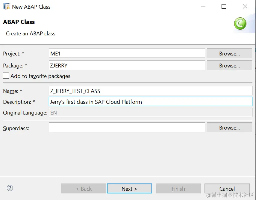 所以我们只能选择新建一个ABAP Class: