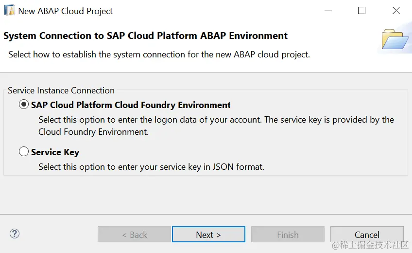 Service Instance Connection,选择SAP Cloud Platform CloudFoundry environment: