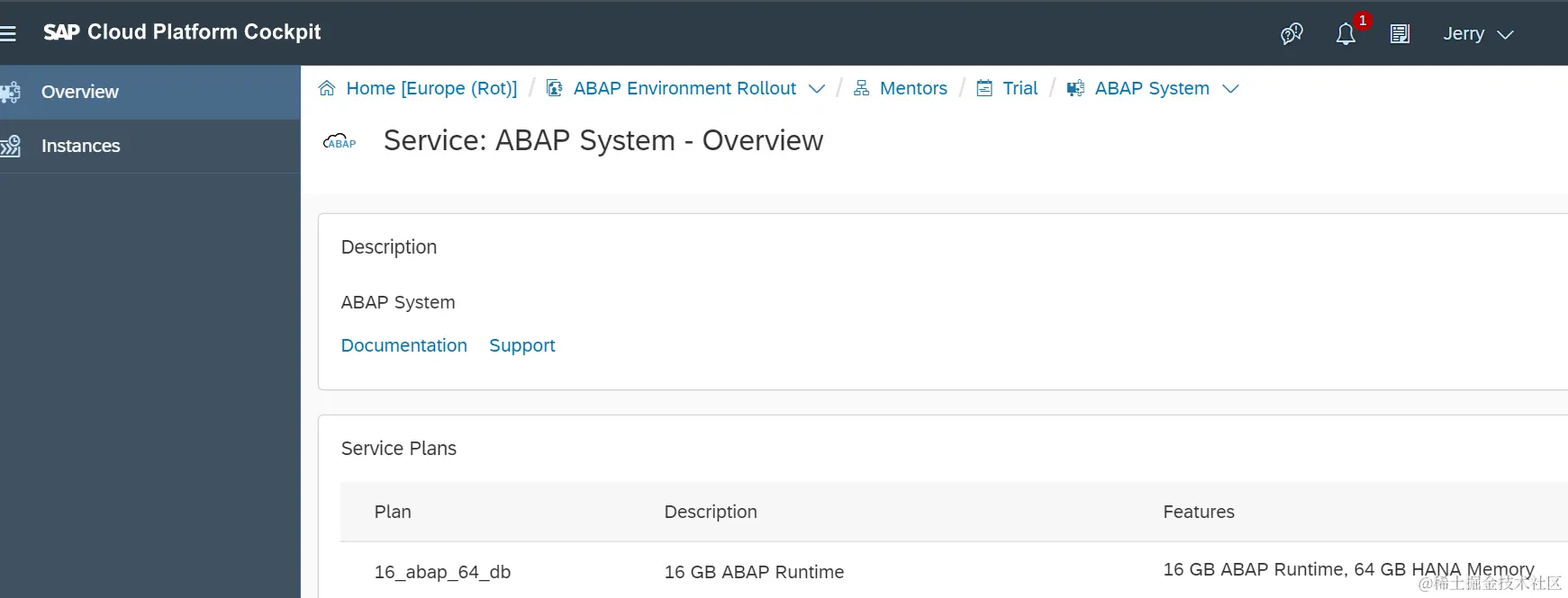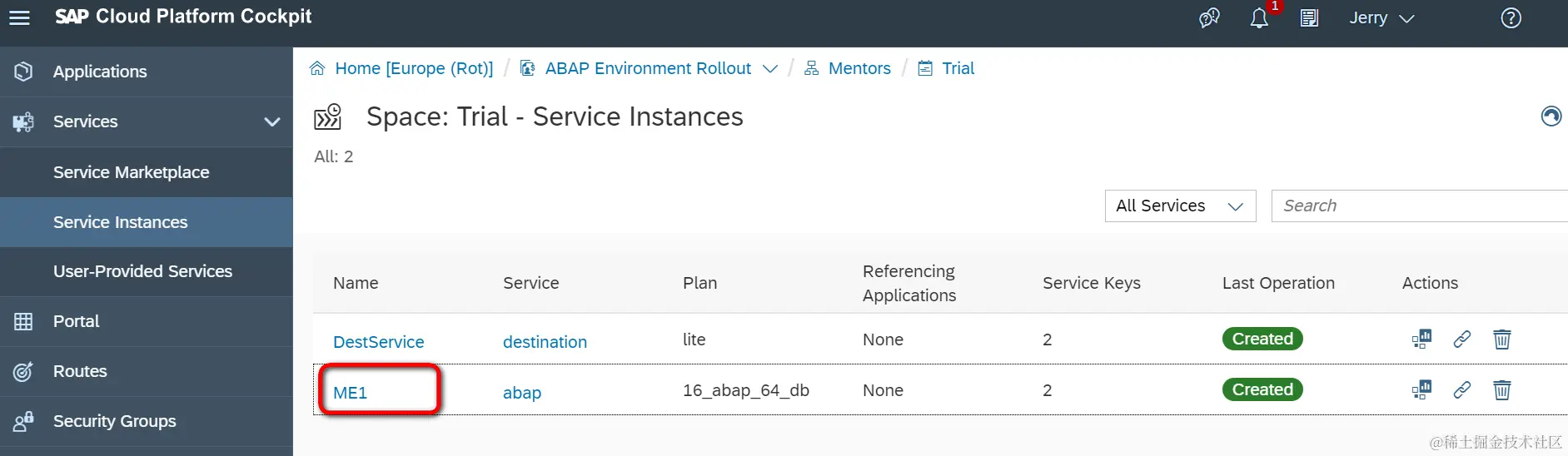 这个Global Account所属的space下面我创建了一个ABAP系统实例,ID为ME1: