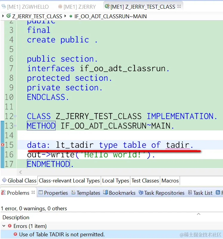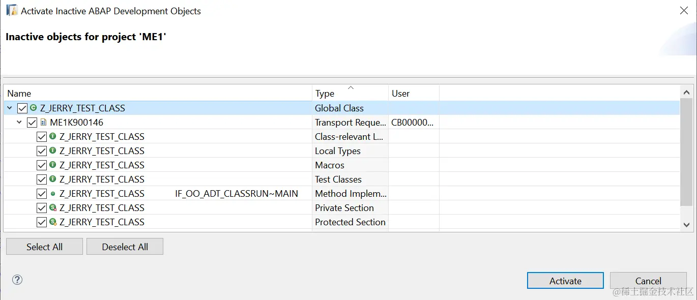 至于为什么Jerry在IDE里书写了一段纯文本的ABAP源码,但是激活时任务列表里产生了这么多对象,请参考Jerry的博客:General properties of ABAP Classes / Interfaces