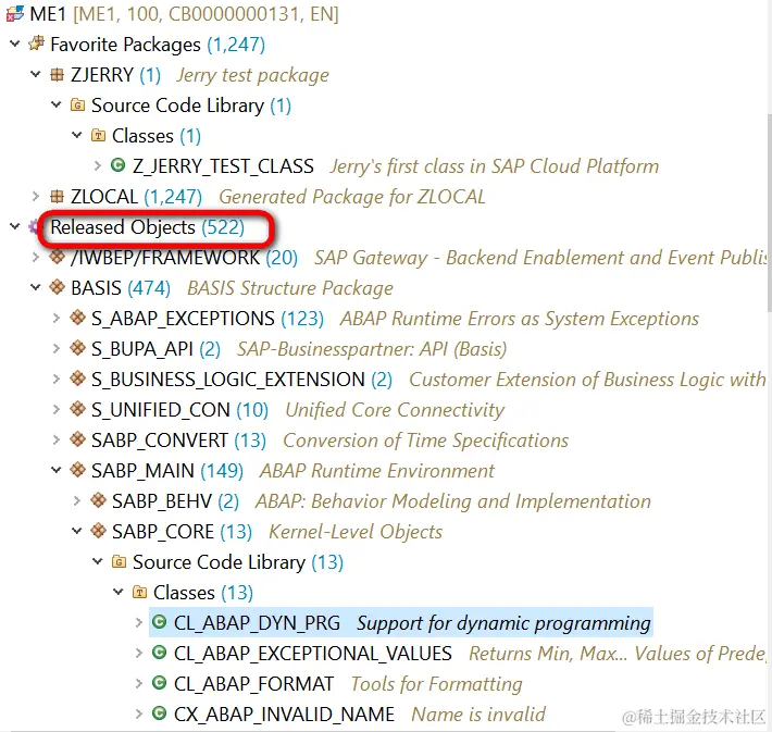 所有对底层资源的访问都必须通过SAP定义的白名单里的API进行,即下图Released Objects里包含的API。