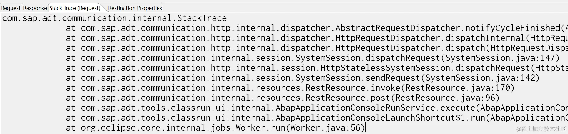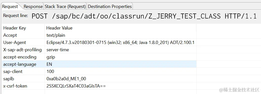 观察这个类执行的交互日志,发现我们在ABAP Development Tools里触发的执行动作,IDE发送了一个SAP Cloud Platform上endpoint为/sap/bc/adt/oo/classrun的POST请求。