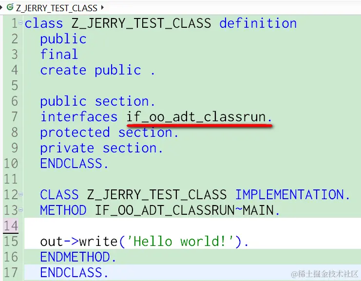 这个新建的ABAP类实现IF_OO_ADT_CLASSRUN接口, 进行Hello World的打印:
